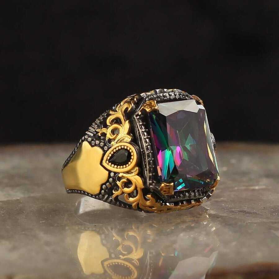خاتم رجالي من الفضة الإسترليني عيار 925 مع حجر التوباز الصوفي المطلي بالروديوم