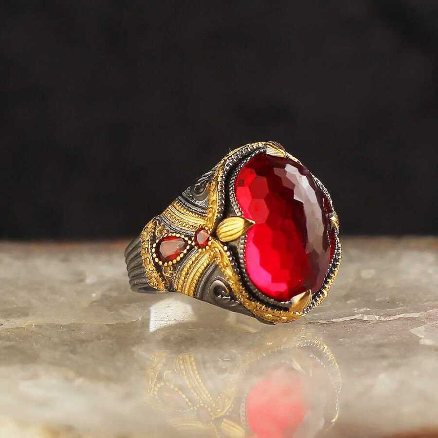 خاتم رجالي من الفضة عيار 925 بحجر الزركون المطلي بالروديوم