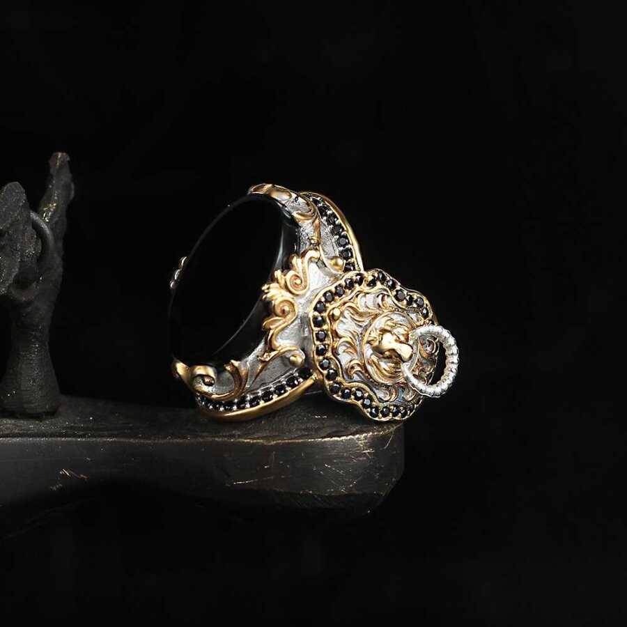 خاتم رجالي من الفضة بحجر العقيق المطلي بالروديوم ورمز الأسد