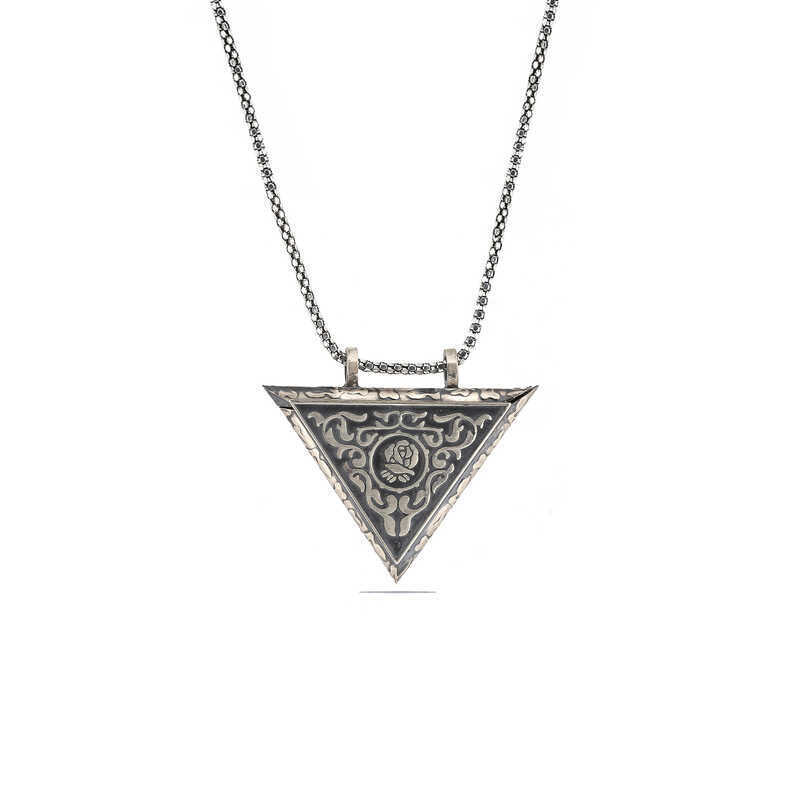 قلادة تميمة على شكل وردة مثلثة من الفضة قابلة للفتح
