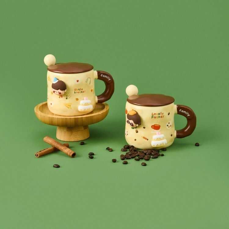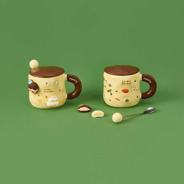 Set Content: 1 Ceramic Mug + 1 Figurine Lid + 1 Matching Stirring Spoon.