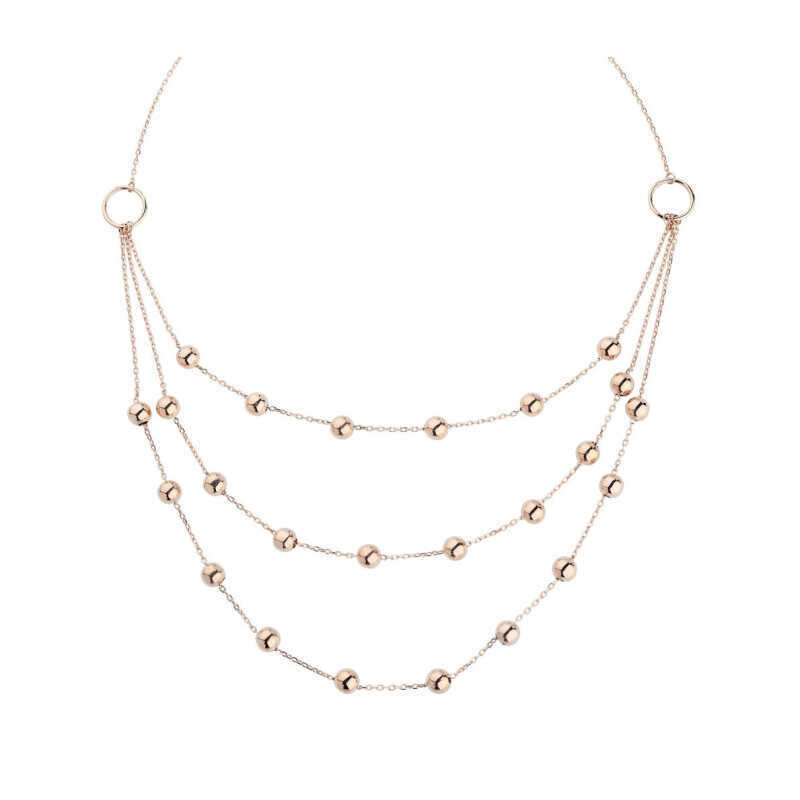 Long Silver Necklace With 3 Rows Of Bulk