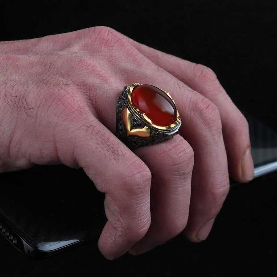 Rhodium Plated Agate Stone Men'S Silver Ring