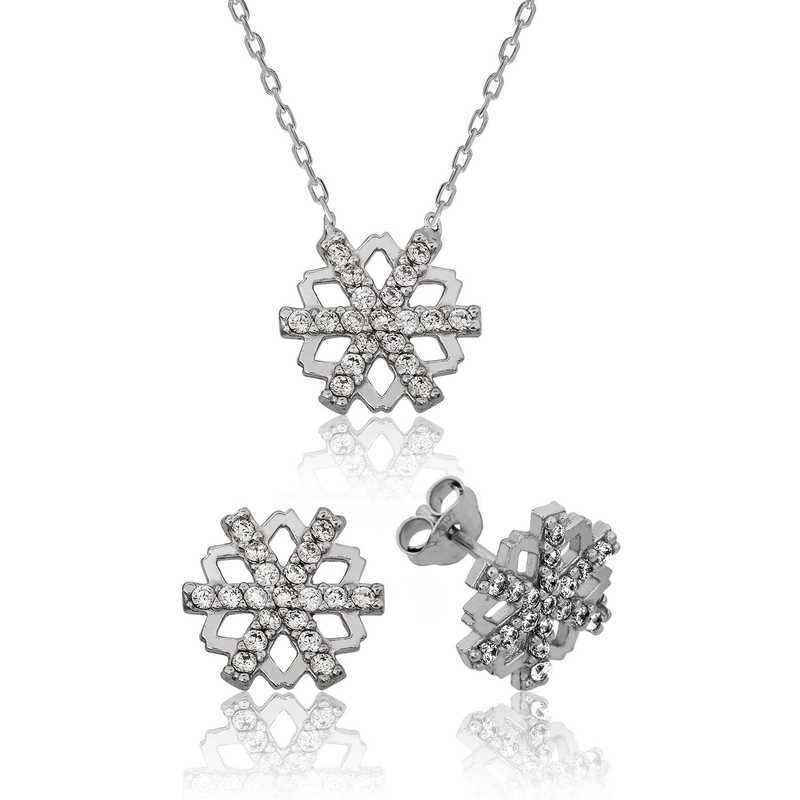 Silver Snowflake Women's Set The shine and clarity of women are specially designed to resemble a snowflake. Another feature that makes them special is that each snowflake is unique and valuable, just like women. His nobility has managed to attract attention in every period. In addition, it symbolizes that people can live happily without harming each other, just like snowflakes. This stylish set; It is an excellent option that can be preferred on special occasions as a birthday gift, Valentine's Day gift or a gift for mothers. Snowflake Women's Set is made of 925 sterling silver. It is rhodium plated on silver. Rhodium plated products retain their shine for a long time and oxidation is delayed. The stones on it are zircon. The average chain length is 45 cm. As with all silver women's sets, this silver snowflake women's set is also produced entirely by hand. Due to silver and precious stones, there may be a deviation of ± 10% in the stated average product weight.
