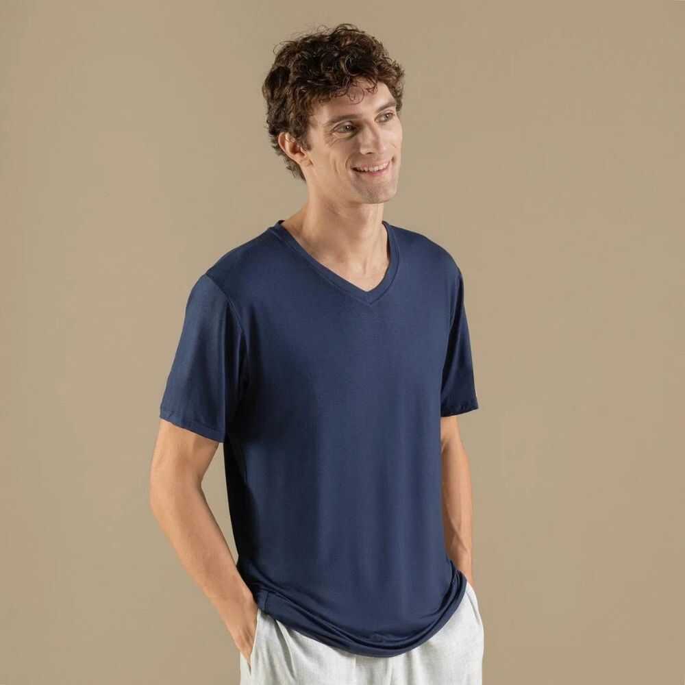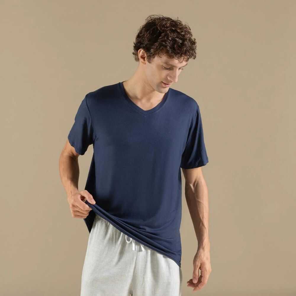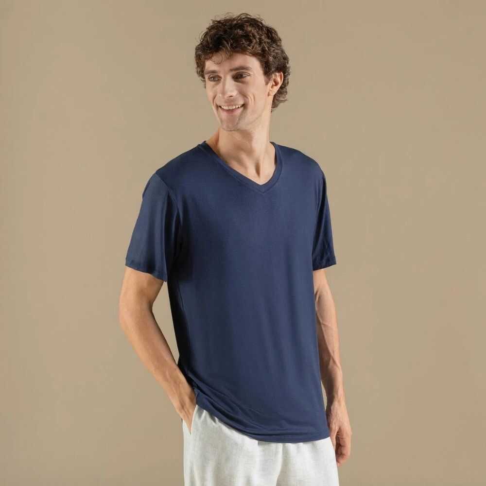 Sharp Design Meets Unmatched Breathability Refine your casual attire with the Pallas V-Neck Collection, exclusively at Vipshopica. This Navy Blue T-shirt is the perfect balance between a relaxed feel and a sophisticated look. Crafted from 100% high-quality breathable cotton, it is specifically designed to provide comfort in the warm Middle Eastern climate. The clean V-neckline elongates the silhouette, making it an ideal choice to wear on its own with chinos or as a premium base layer under a smart blazer.
