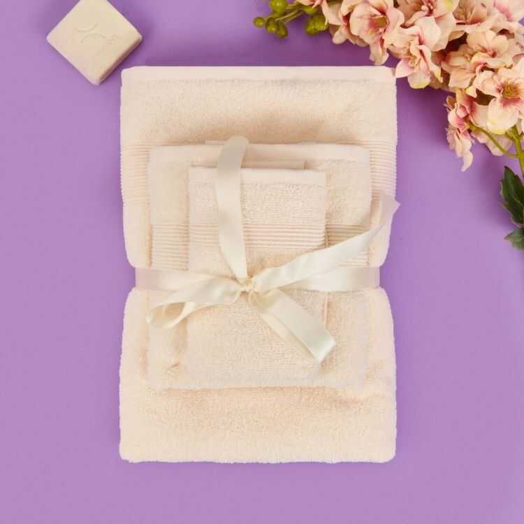 عندما تأتي اخبرنيالطقوس الكاملة للفخامة العضوية في منزلكِ انقلي أجواء الاسترخاء الهادئة من أرقى المنتجعات الصحية إلى منزلكِ مع طقم مناشف سوفت المكون من 3 قطع، حصرياً لدى Vipshopica. صُمم هذا الطقم المتكامل بلون "السكري" الراقي ليمنح حمامكِ مظهراً متناغماً وفاخراً. صُنعت كل منشفة من القطن العضوي المعتمد بنسبة 100%، مما يوفر ملمساً وثيراً للغاية ولطيفاً على البشرة. من منشفة الاستحمام الكبيرة إلى منشفة الوجه الدقيقة، يضمن لكِ هذا الطقم دلالاً لا يضاهى بأفضل الألياف الطبيعية بعد كل استحمام.