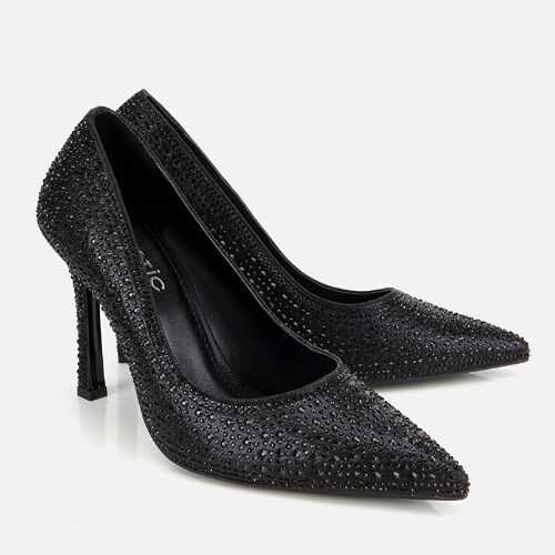 Steal the spotlight with the Vipshopica Starry Night Collection. These high-heel stilettos are designed for the woman who wants to shine at every gala, wedding, and special event. Featuring a sleek black silhouette adorned with meticulously placed shimmering stones, these heels reflect the light with every step you take. The high stiletto heel elongates the leg for a statuesque look, while the premium craftsmanship ensures you remain the center of attention all night long.