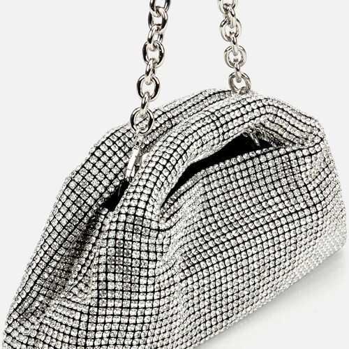 Notify me when its in stockDazzle the Night with Pure Radiance Elevate your evening glamour with the Hotiç Jeweled Silver Lame Clutch. This exquisite piece is designed for the woman who wants to shine at the Middle East's most prestigious events. Featuring a brilliant silver lame finish and a sophisticated stone-encrusted clasp detail, it strikes the perfect balance between high-fashion luxury and timeless elegance. Whether you are attending a grand wedding in Dubai or a formal gala in Riyadh, this clutch ensures you carry your essentials with unmatched sophistication.